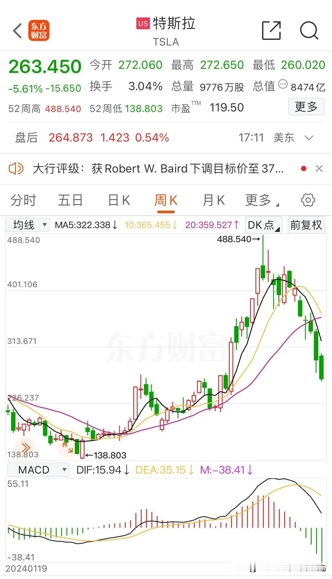 特斯拉股票行情分析